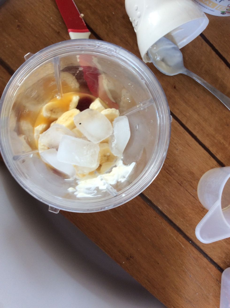 Put almost a cup of yoghurt in the blender 1st