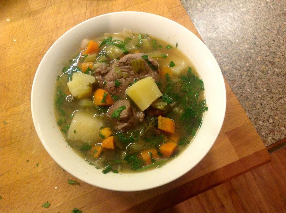 After 2 hours, add fresh parsley, add salt, check seasoning again, then eat:)