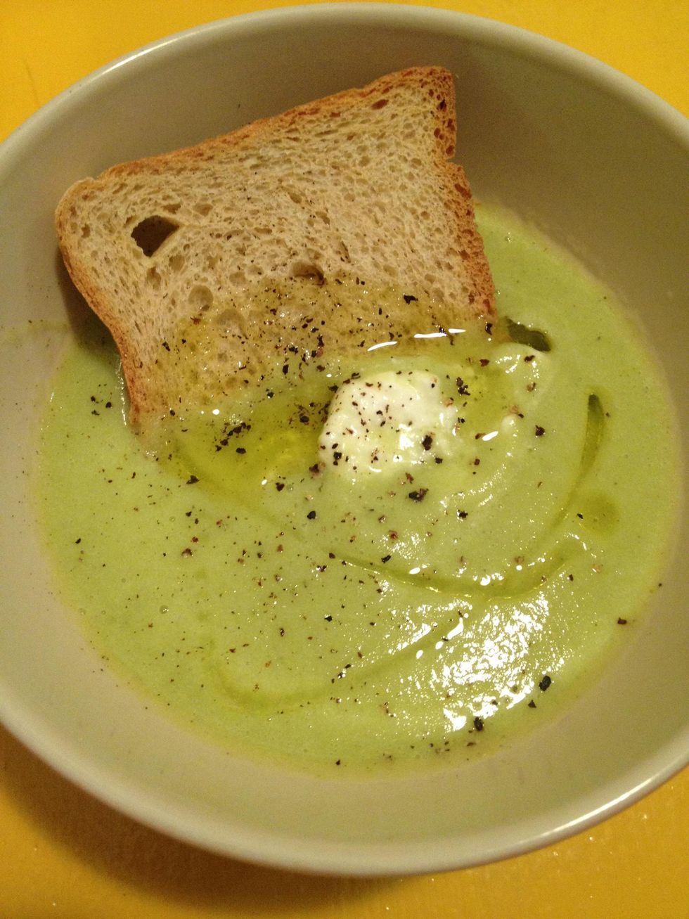 add 3 teaspoons of cottage cheese and blend it all together. correct salt and pepper before blending the soup for the last time.