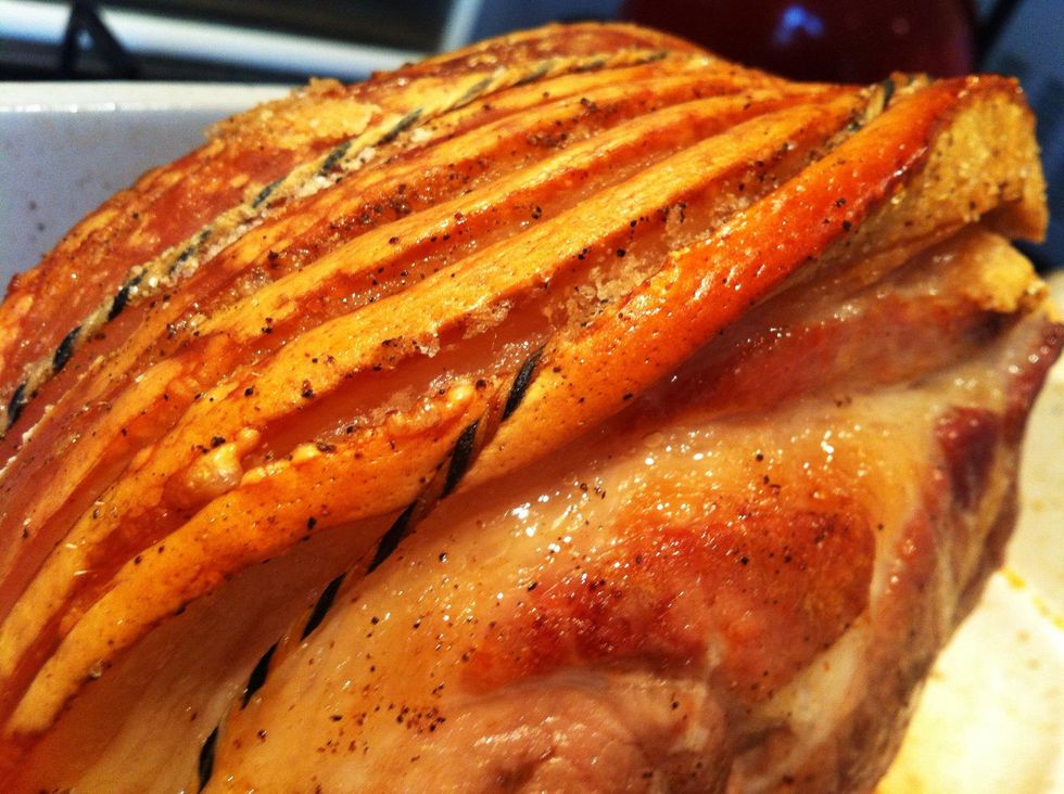 Flip your Shoulder over and rub the Salt & Pepper into the under side of your Pork, using more pepper this time than you did on the top..