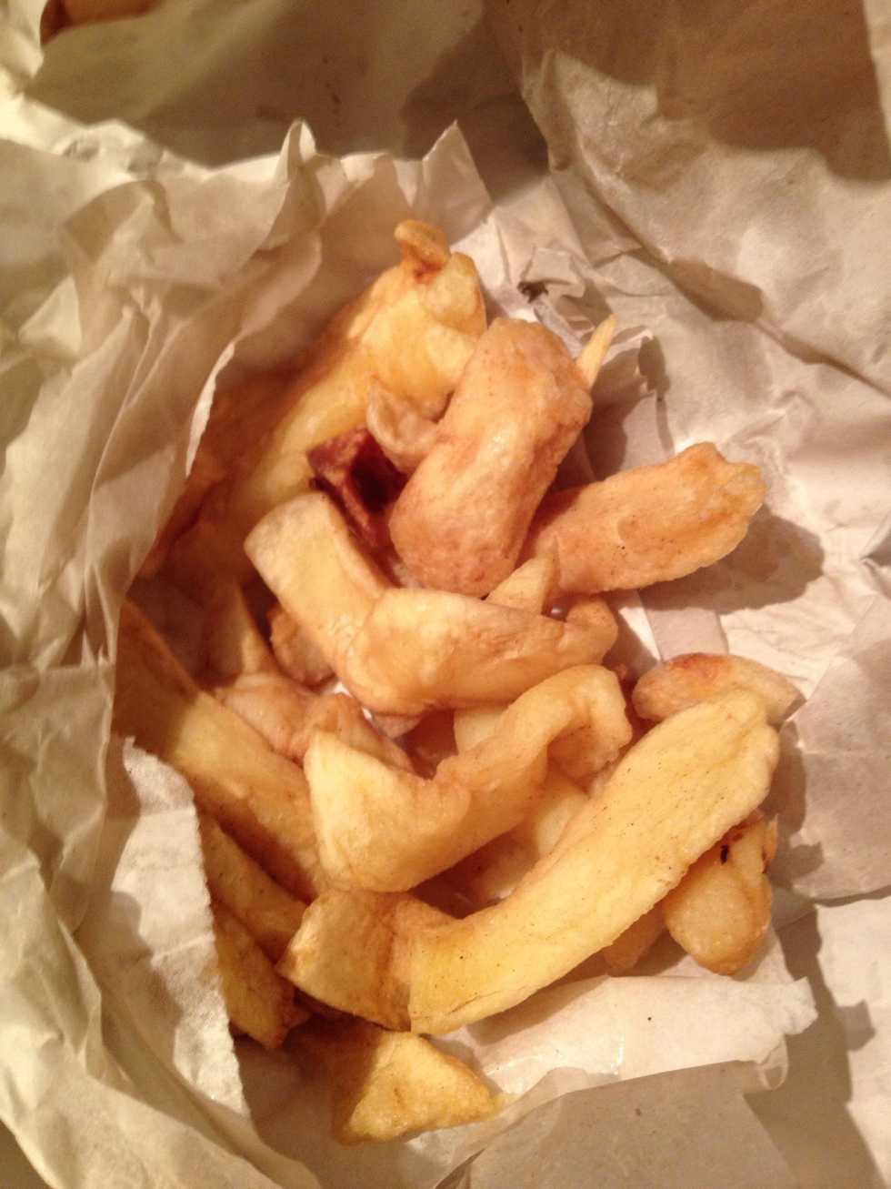 Heat a big drizzle of vegetable oil and throw in the chips for 30 seconds or so.