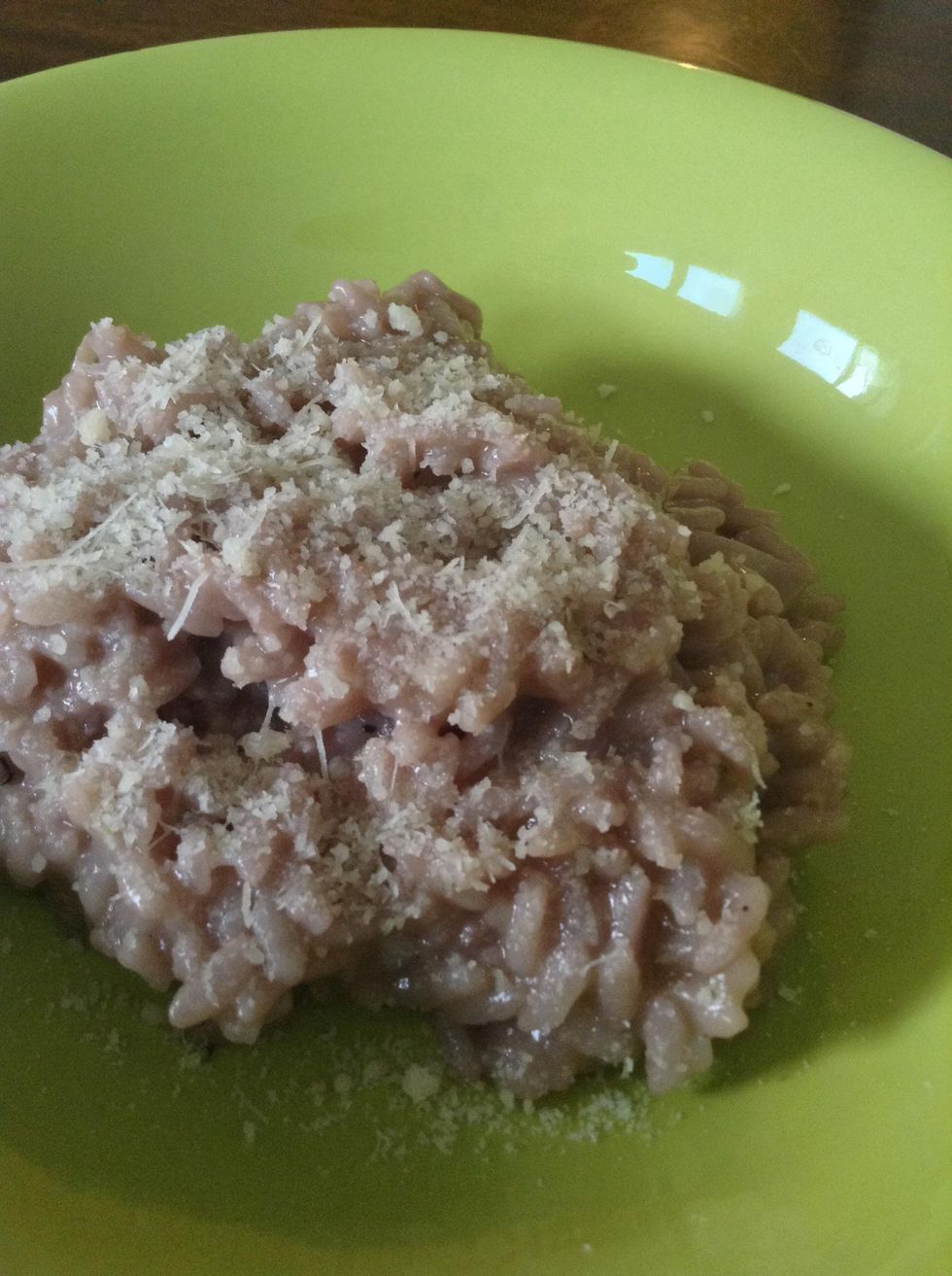 Now the mantecatura. Turn off the heat, and add the butter or olive oil (I do both), and the grated Parmesan. Stir well and let sit for 2 minutes with a lid on the pan. Serve with some grated Parmesan