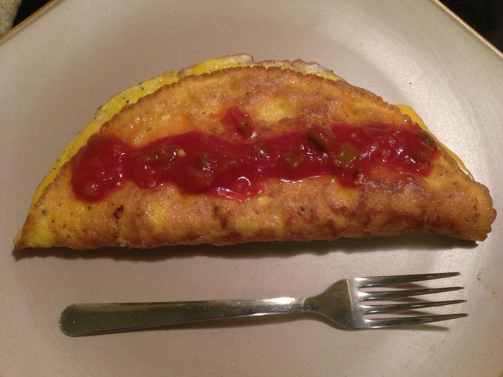 Plate it up with whatever condiments you like. If flipped at the right time, the filling should be sealed in.
