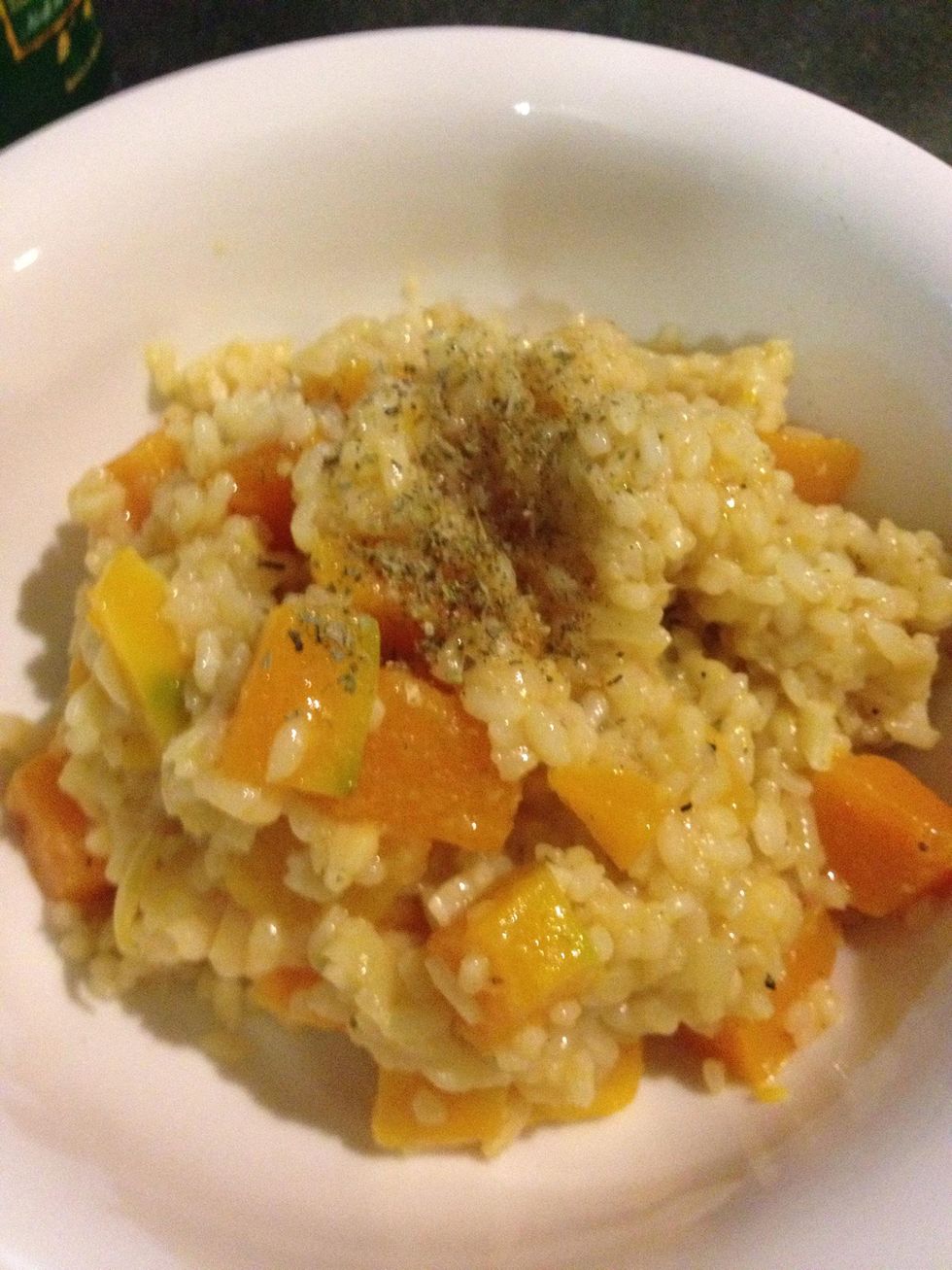 Cube up the pumpkin into small pieces. This will ensure they cook in the risotto.