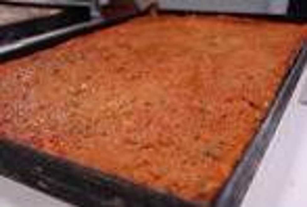 Put the dough in an oven dish and flatten it with your hands.