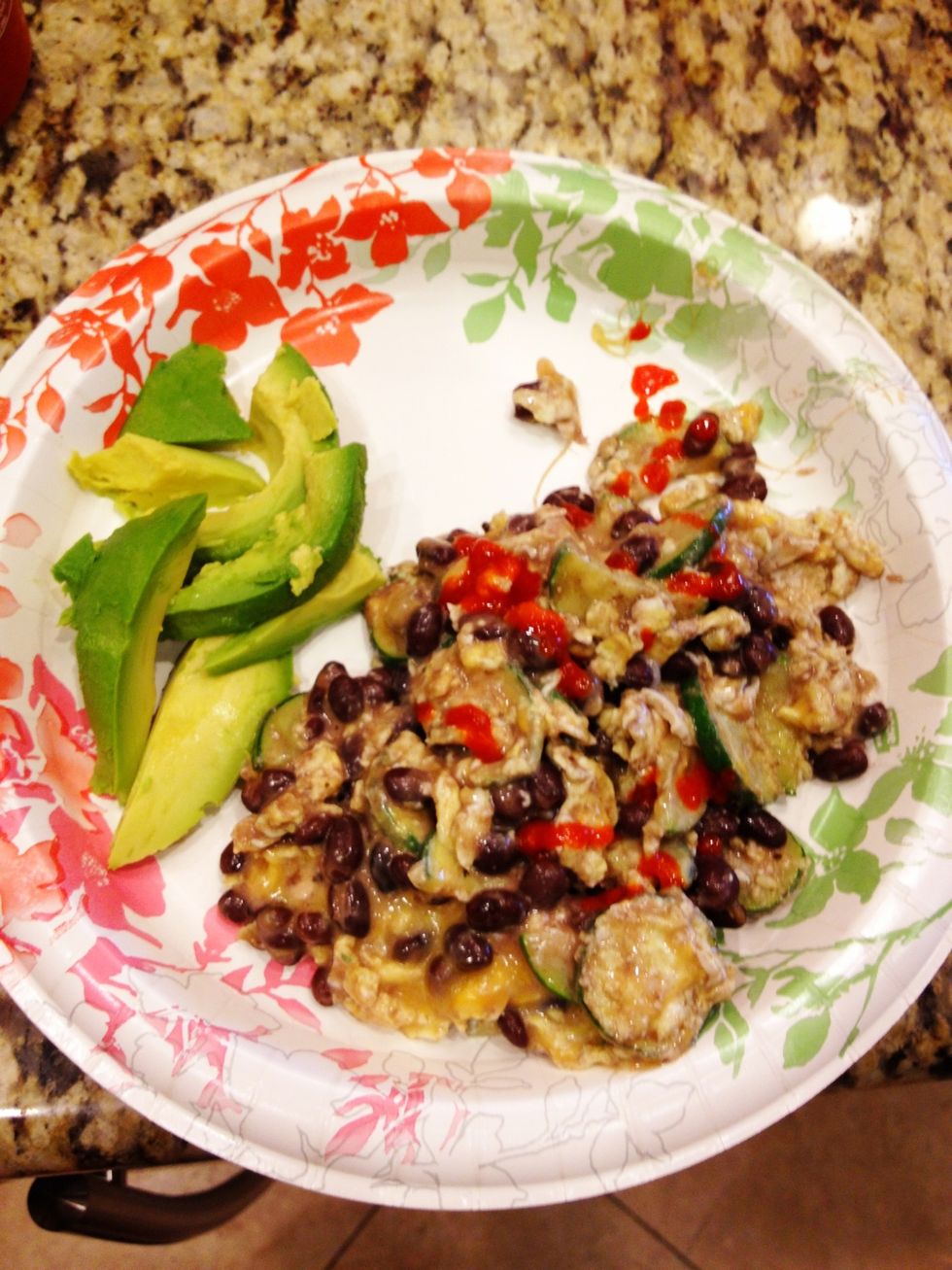Plate and eat with a little hot sauce and 5 blocks of avocado. I also dust mine with a little cheese for some added protein.