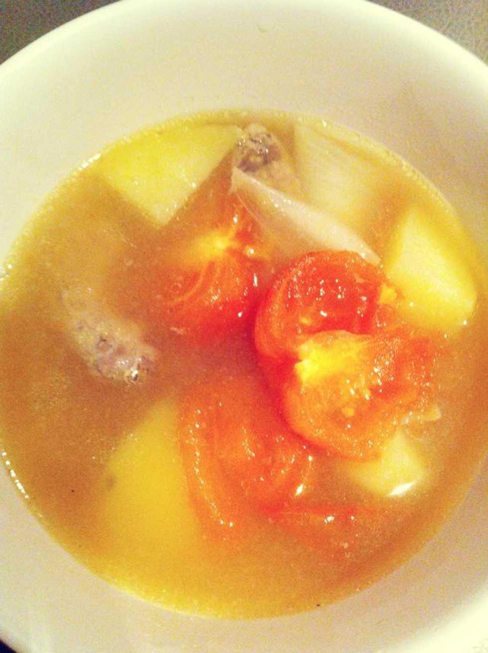Add in the tomatoes & let it cook for another 15-20mins / till its soft before serving. With the salted plum, I didn't have to season the soup.