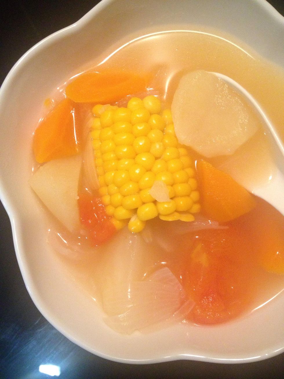 If you're using corn, cut into halve. The soup taste much sweeter with corn added.