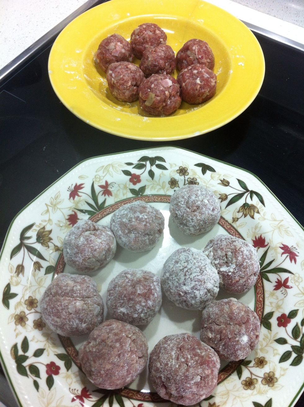 Se hacen las bolas de albóndiga y se pasan por la harina para posteriormente freirlas en la sartén.