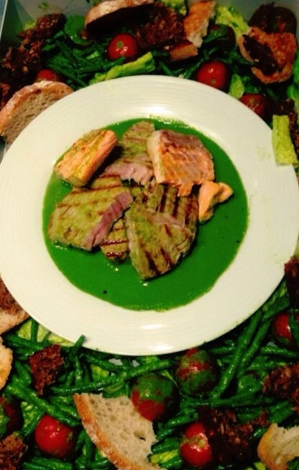 Grill tuna ( about 1.5 min each side )I have add some trout because I had not enough of tuna and I was hungry :)))