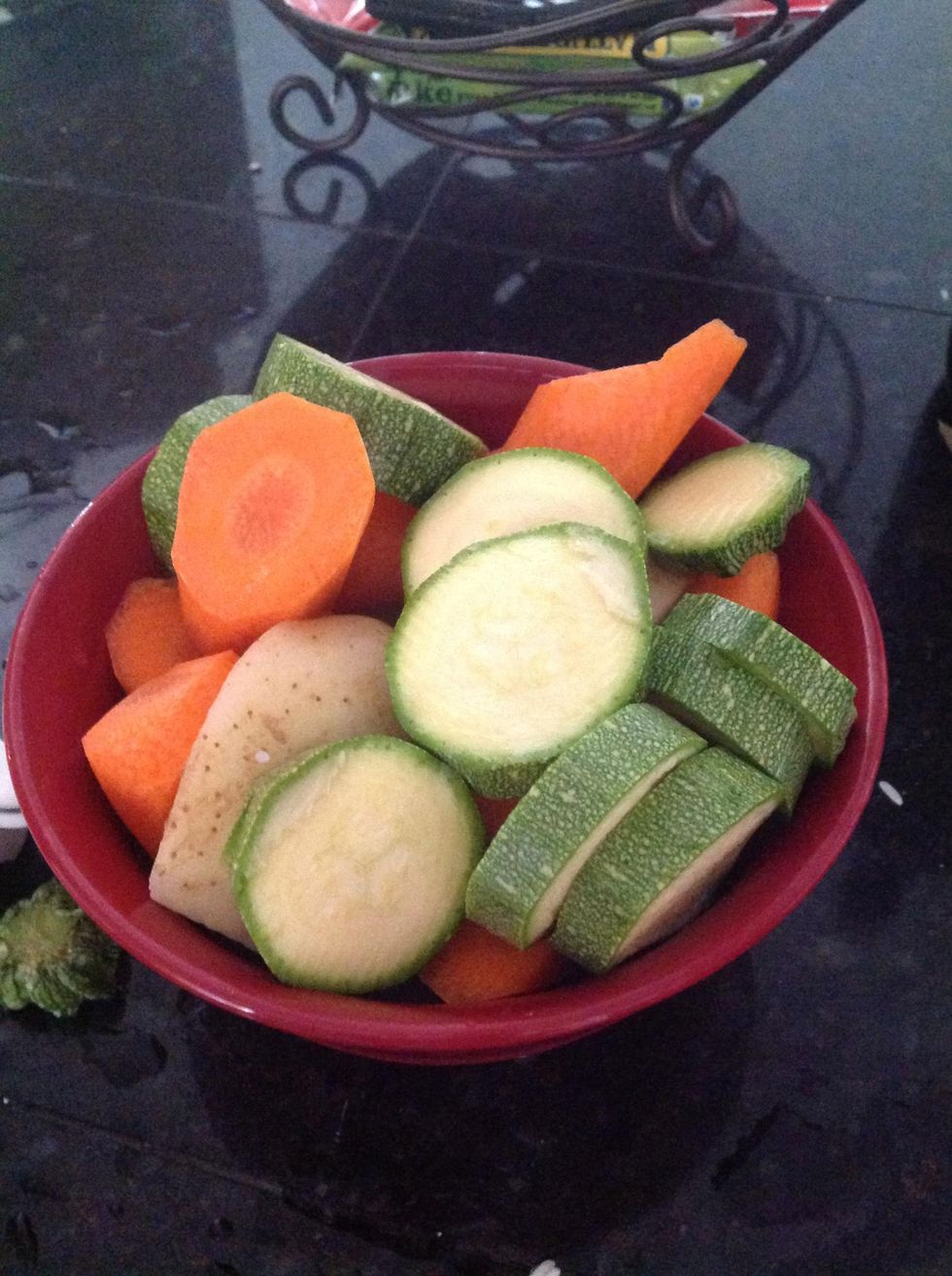 While your waiting for the meatballs to cook, cut up your favorite vegetables