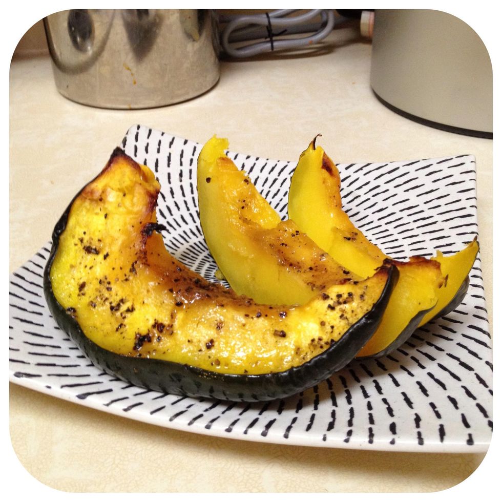 Take half the butter, brown sugar, salt, and pepper. Spread butter on the sides and center of the squash. Sprinkle brown sugar, salt, and pepper over butter. Repeat on the second half of squash.