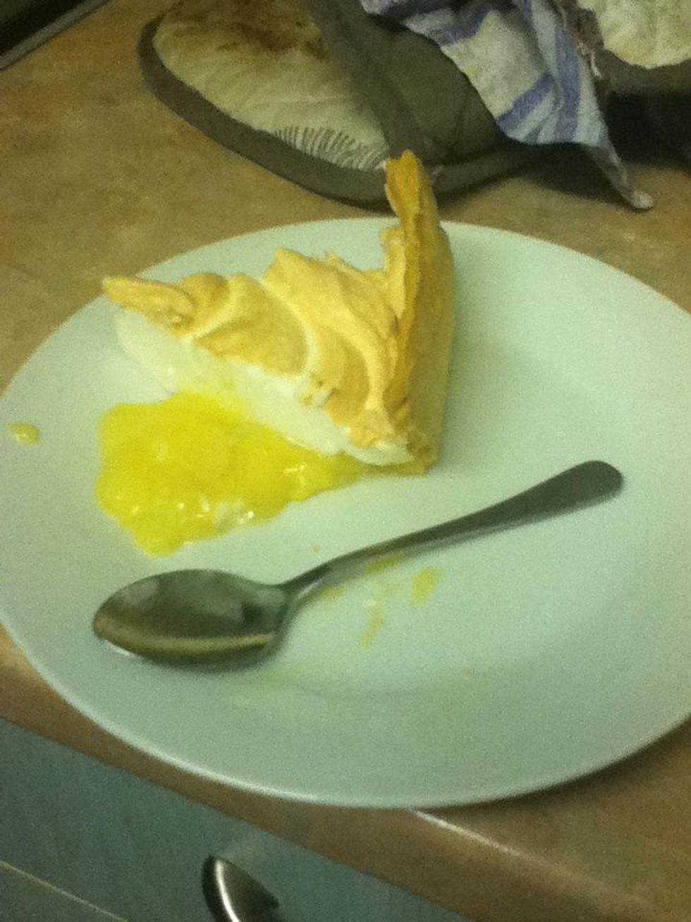 While the pastry is baking, prepare the filling. Mix half the conflour, 100g of sugar and lemon zest in a saucepan. Add the lemon juice, orange juice and 200ml of water