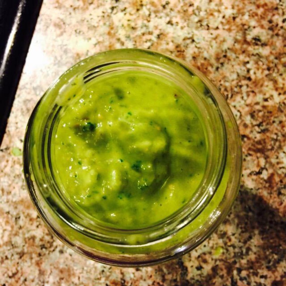 This is a delicious creamy goodness of avocados with the tang of the tomatillos and the heat of the jalapeño. Enjoy !!