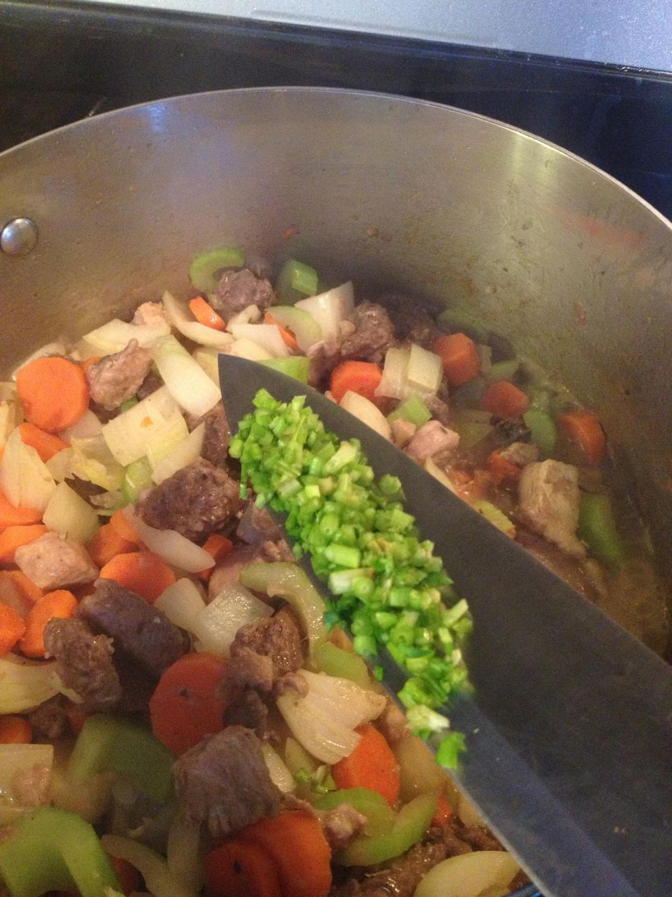 Add the chopped stalks to the pan