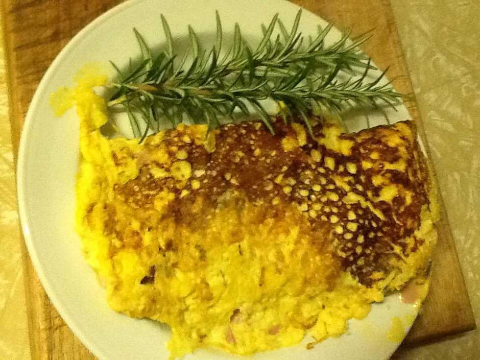 Ingredients are 3 eggs a handful of cheese ham and milk.