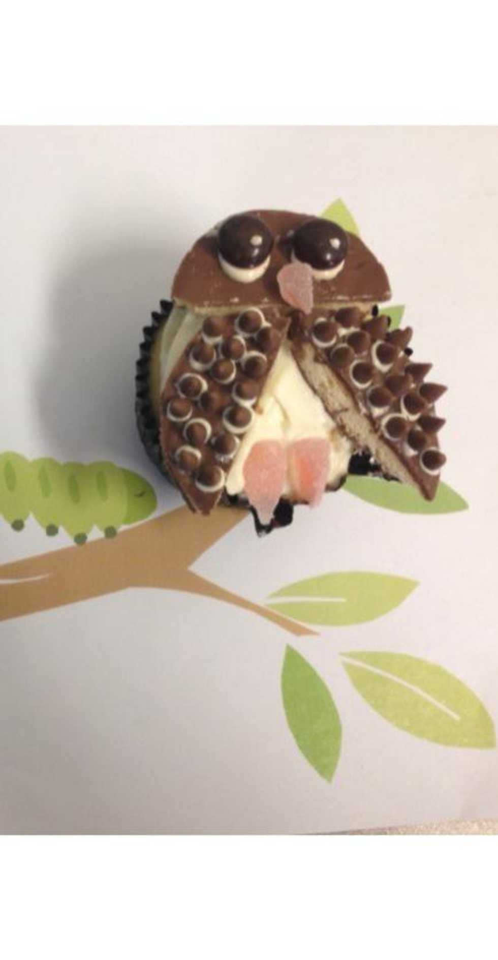 Place the chocolate covered biscuits on the cupcake! Use one at the top as the head and then add two off the top one as the owls wings.