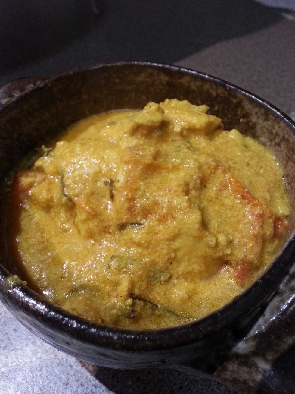 Add the chicken and its marinade to the pot. Bring to a simmer. Cook for 10 minutes. Add the ground cashwnut/ almond to thicken the sauce. Season with salt and add dried chillies if desired.