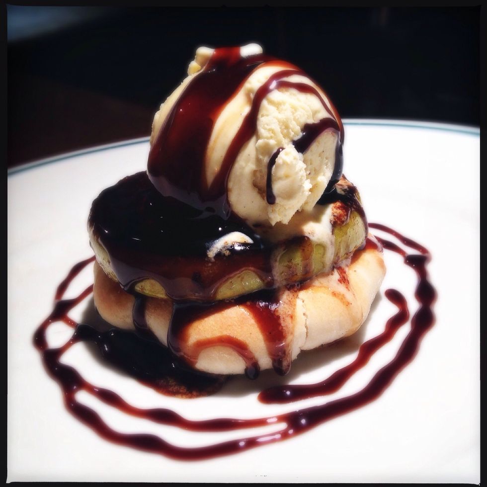 Top with a ball of homemade vanilla ice-cream
