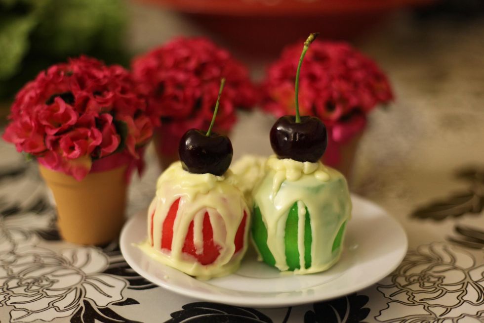 Set them up how you want to display them for serving. The next part is messy and the apples are now quite fragile so we don't want to move them around so much.