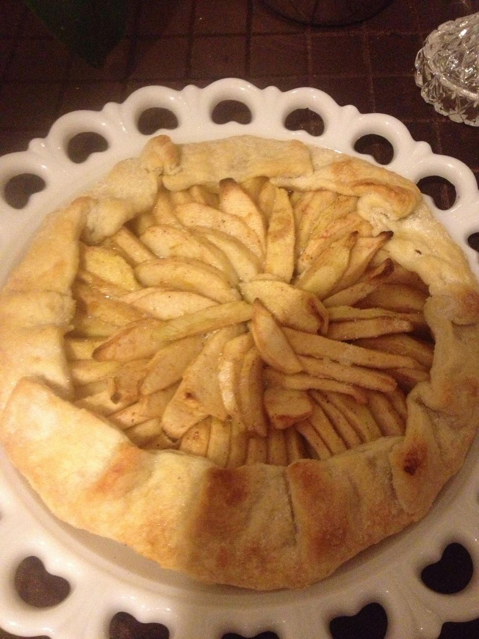 Cool galette slightly before serving. This is a dinner party hit everytime! I served mine with a cranberry pear white balsamic vinegar reduction. Organic vanilla ice cream is a great accompaniment