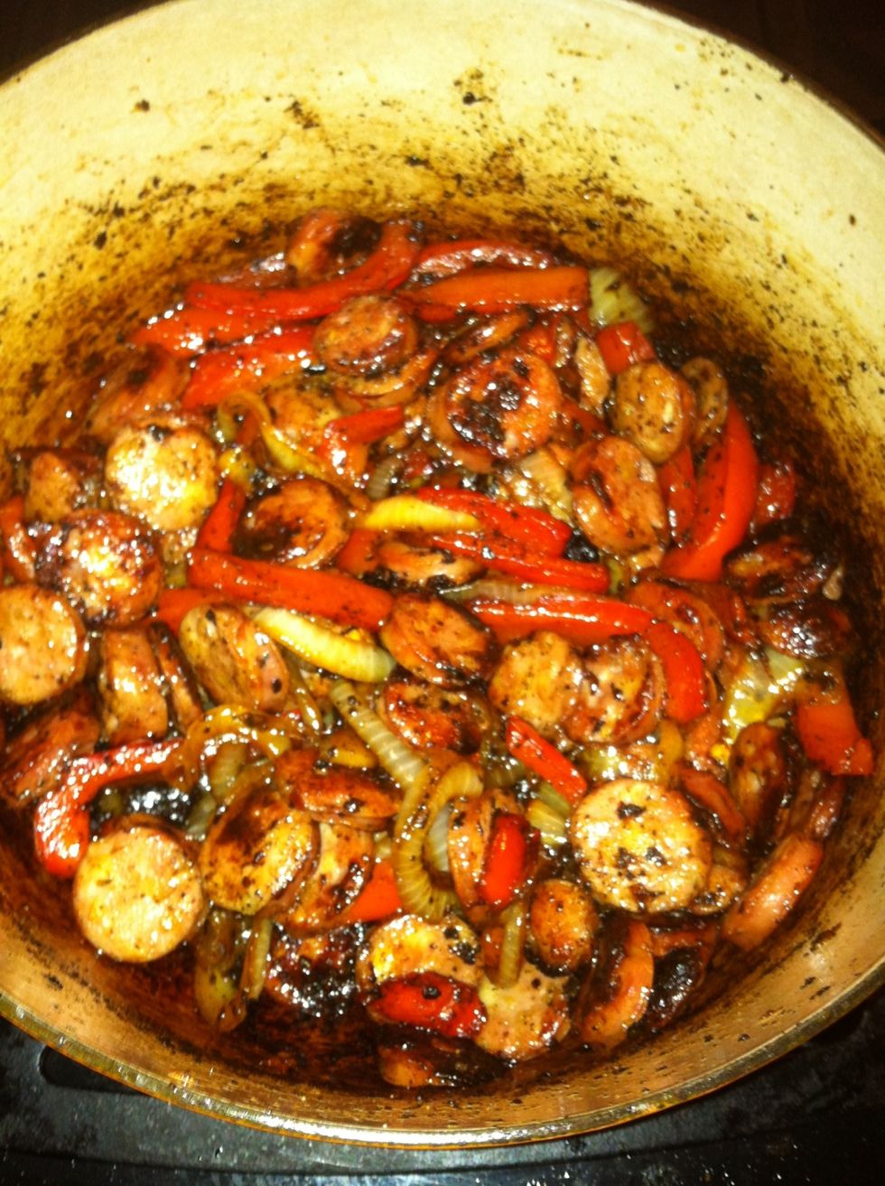 Take out sausage and throw the onions & peppers in