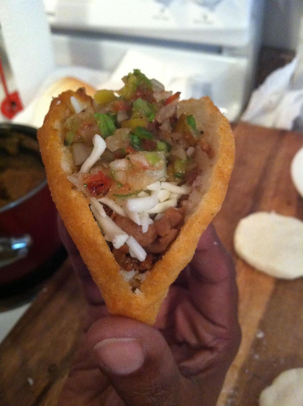I chopped my cilantro, onion,pepper,banana peppers, pepper juice, wine, chili, and topped off my arepa the possibilities are endless you can add anything ,enjoy! Tks to my hubby for helping me!