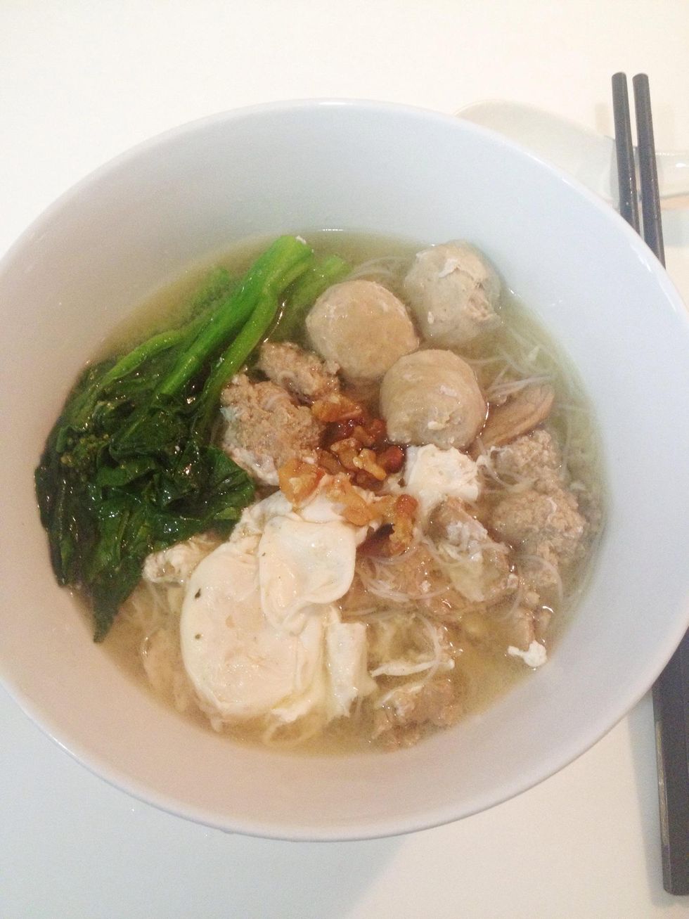 In a separate pot, scoop the pork soup enough portion for 1 person. This way, you can keep the remaining in the fridge.