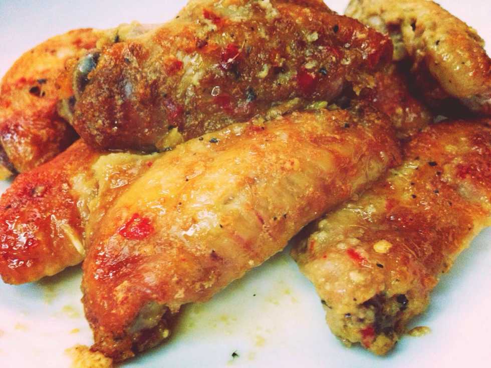 Pour the purée to te chicken wings.🐔