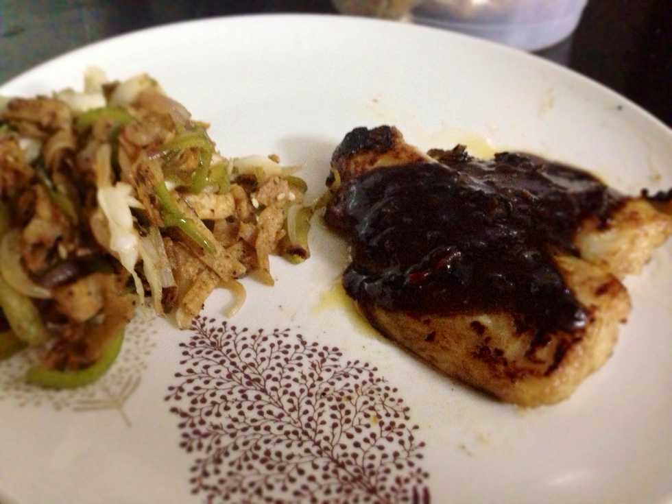 Pour the remaining marinade into the hot pan( high heat) and let it bubble and thicken to a sauce consistency