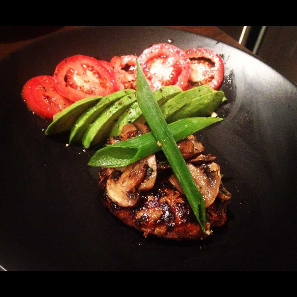 Sauté mushrooms of choice in leftover garlic, ginger, and green onions. Use some of the juice from the cooking turkey burger to add more flavor. Place on top of burger when finished cooking