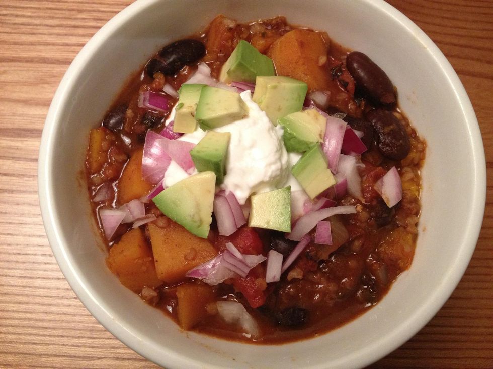 Garnish (I am using plain greek yogurt, red onion and avocado) and serve. Recipe adapted from Bon Appétit.