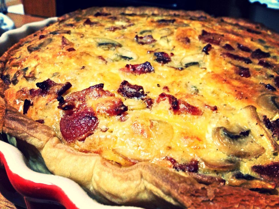 Get you bacon all crispy and cut it up in to small pieces but try not to finish it all before it goes in the quiche.