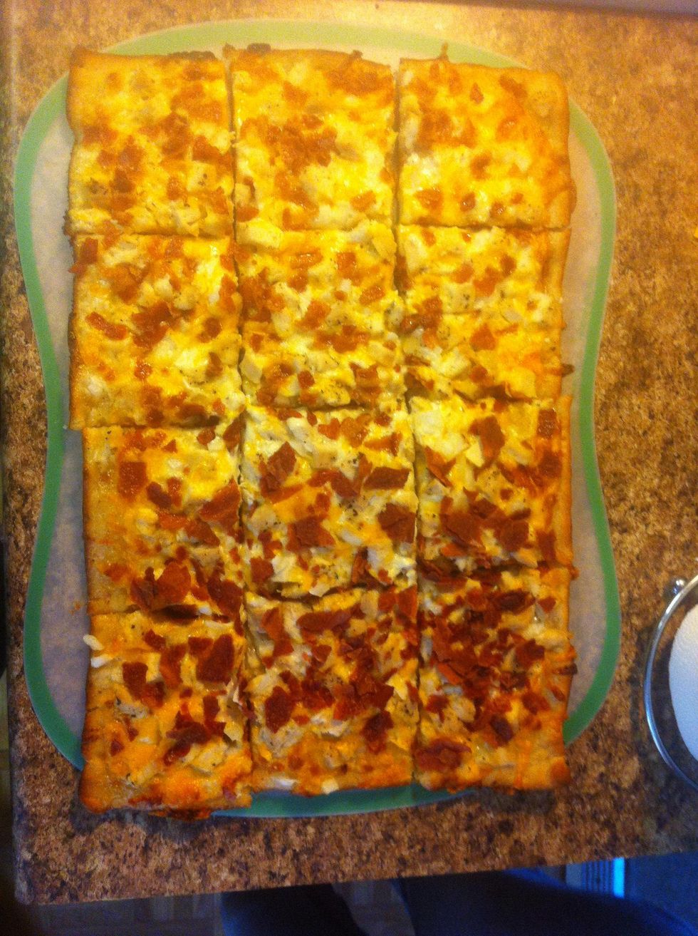 Slice as you'd like and enjoy!!! (great to cut up small and serve as a finger food for parties)