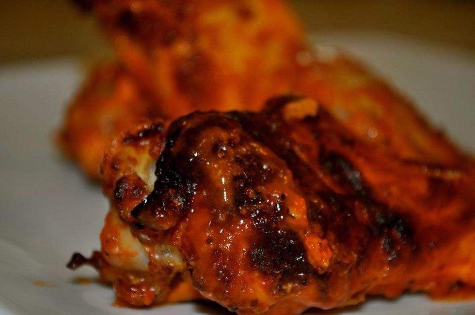Toss in 425 degree oven 55-60 minutes turning halfway through Nd basting with sauce