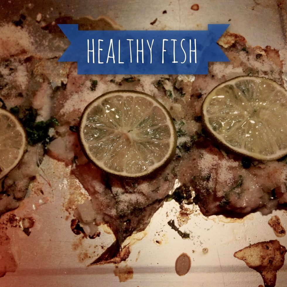 Put the parsley, onions and garlic on your fish