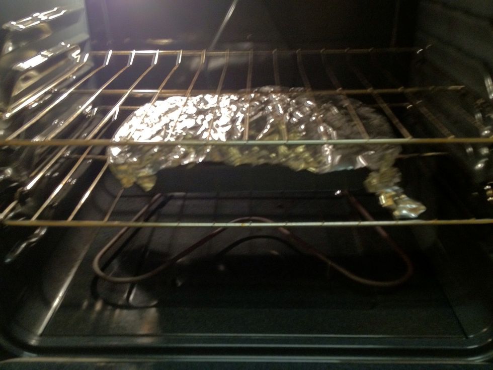Now it's time to bake! Set timer for 30-45 minutes. Cover your pan with foil. And wait til done.