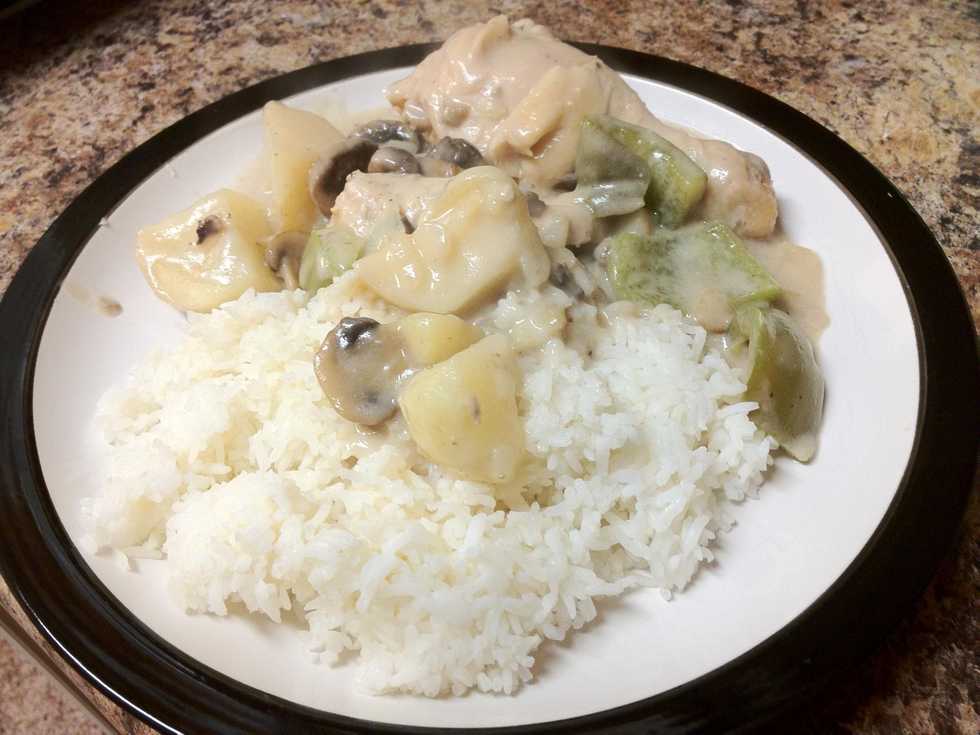 Let chicken simmer for about 5 minutes. Then add your potatoes. Let your chicken cook for another 10 minutes