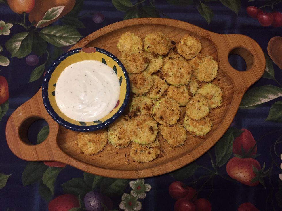 Then, dip slices covered in the egg mixture into the bread crumb mixture. (Again, let the excess fall off before proceeding.)