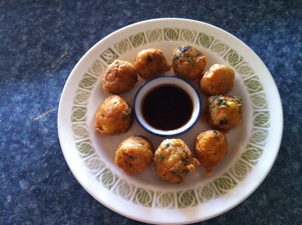 Mix well. Mixture should be soft yet firm to form into balls. Add chopped corriander leaves.