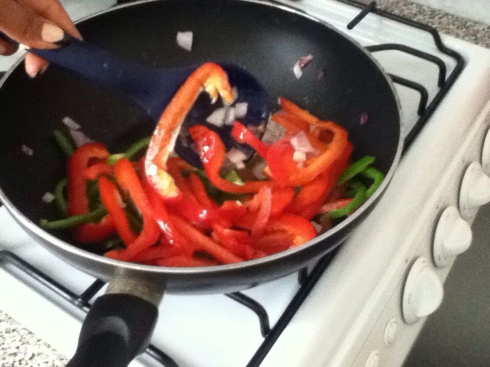 add a little oil to the pan and fry the onions and sweet red & green pepper