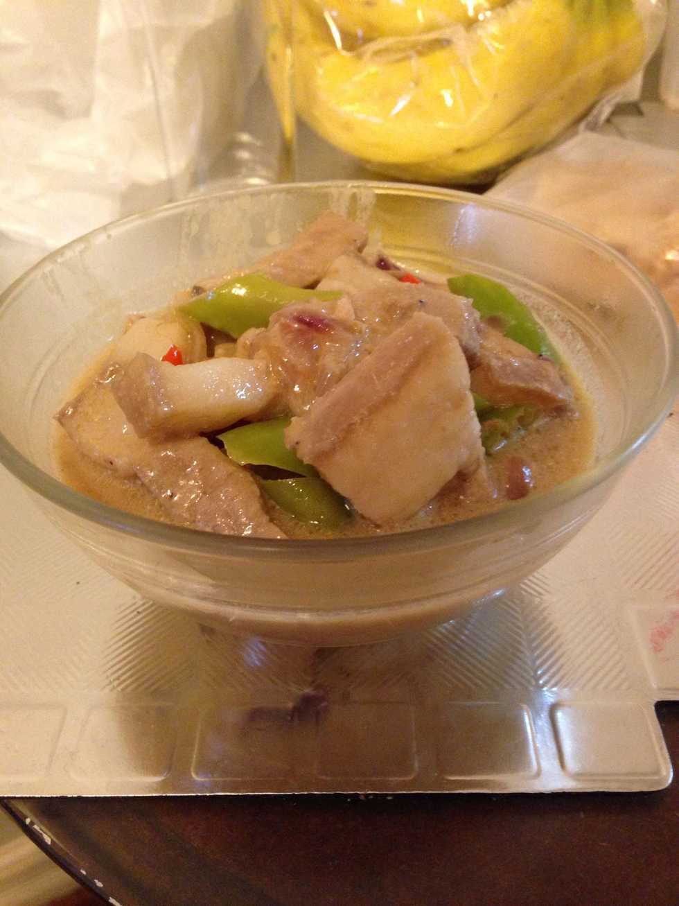 Saute onion and garlicAdd meat, till it tirns brownAdd shrimp pasteAdd coconut milk mixAdd chillisAdjust seasoning with salt to tasteServe with rice