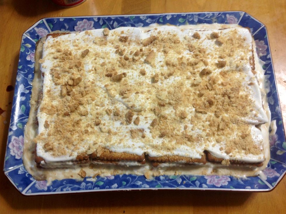 Put the cake in the fridge for about 2 hours and it is ready to eat. Enjoy.