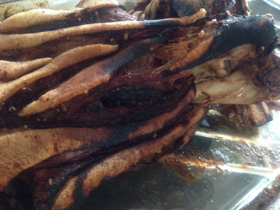 Turn down the heat and let sit for 3 hours. Once every hour I basted the leg with the beer from the pan to make sure the top meat didn't go dry.