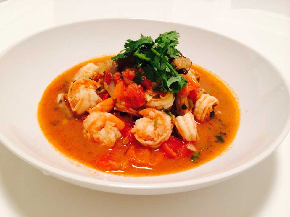 Simmer gently until the shrimp turns opaque, stirring from time to time.