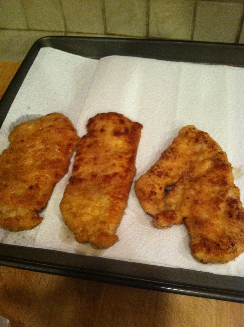 Put on a paper towel to drain excess oil/butter. Cook the rest and its ready to enjoy. I like to put mine in the oven to keep warm in 170 F oven while I cook the rest. Enjoy with pasta on the side.
