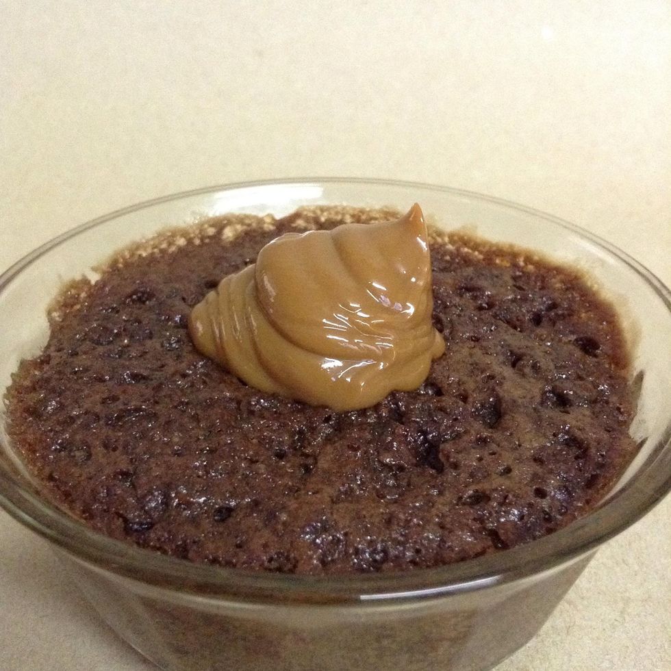 Get the fudge-ish dough into your cup or preferred MWable small recipient (no metals!!)..