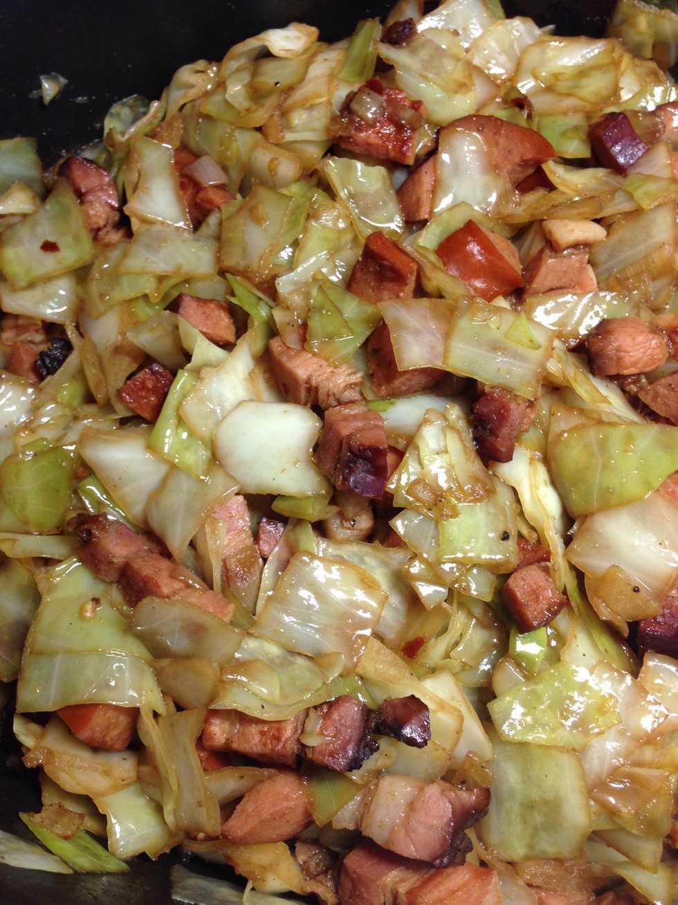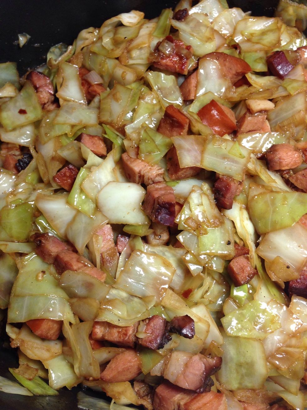 Cook until cabbage is medium soft, I don't like my cabbage over cooked, serve with potatoes and a spoon of sour cream :) enjoy