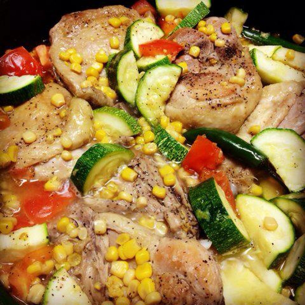 Simmer for 20 mins. Tatuma squash will stay firm. I prefer not to add any liquid. It produces its own. Serve with corn tortillas.