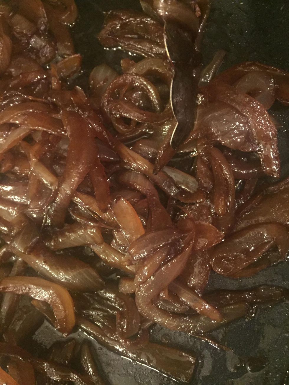 Still not done! You don't want any of the onions to remain white, or crunchy.